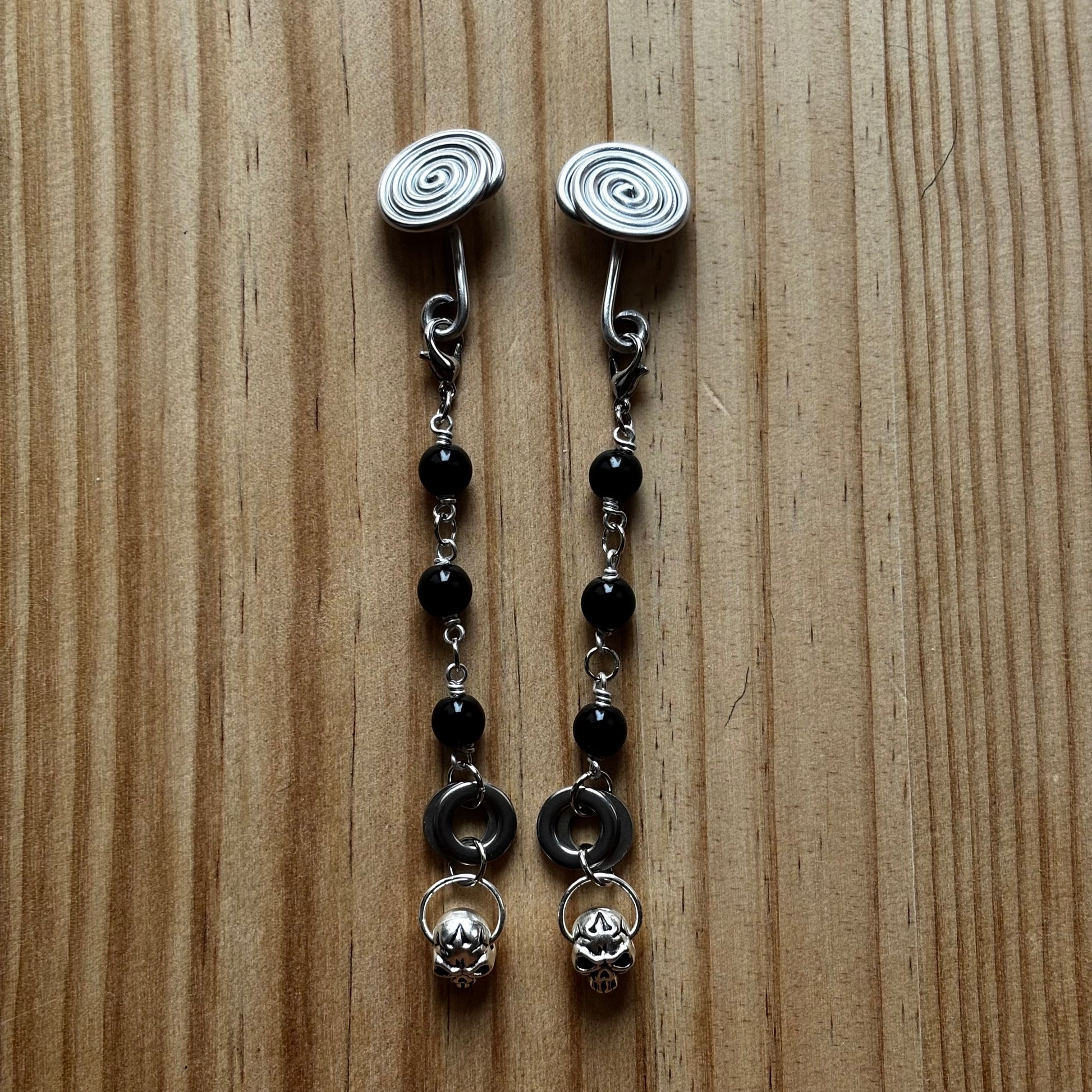 Skull charm Spiral Gauge Earrings for stretched earlobes!
