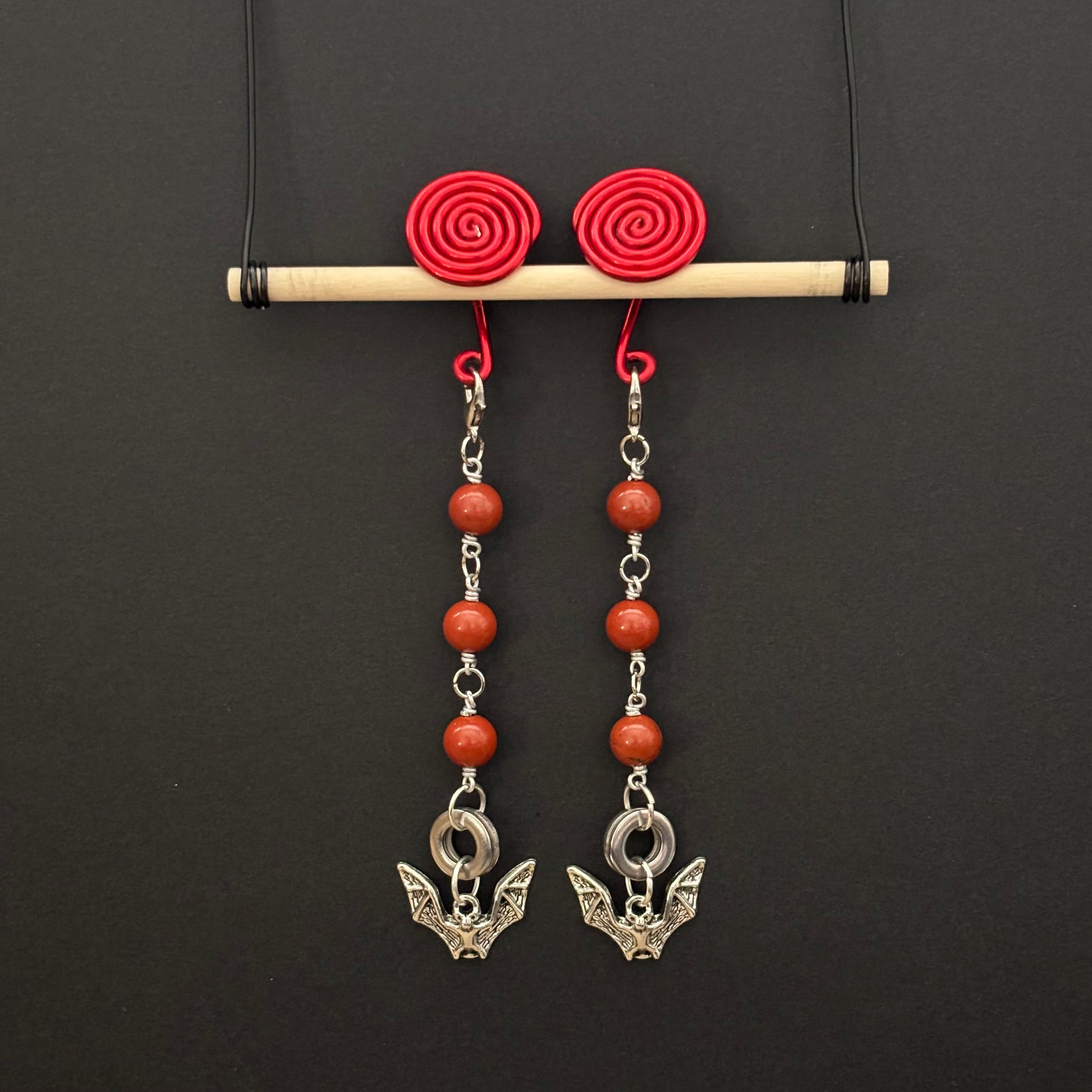 Red Spiral Gauge Earrings | Jasper Bat